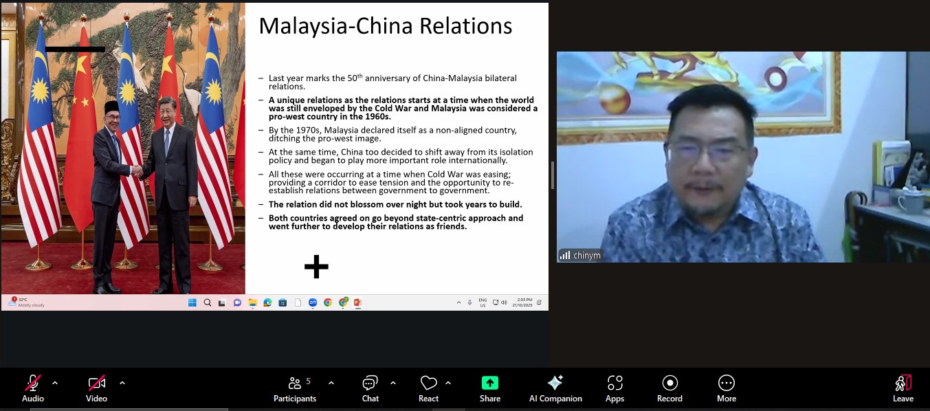 The online session also concluded with an interactive Q&A discussion, where participants shared their views on the implications of humanistic diplomacy, the evolution of Malaysia–China relations, and the broader role of empathy and cultural understanding in shaping international cooperation.